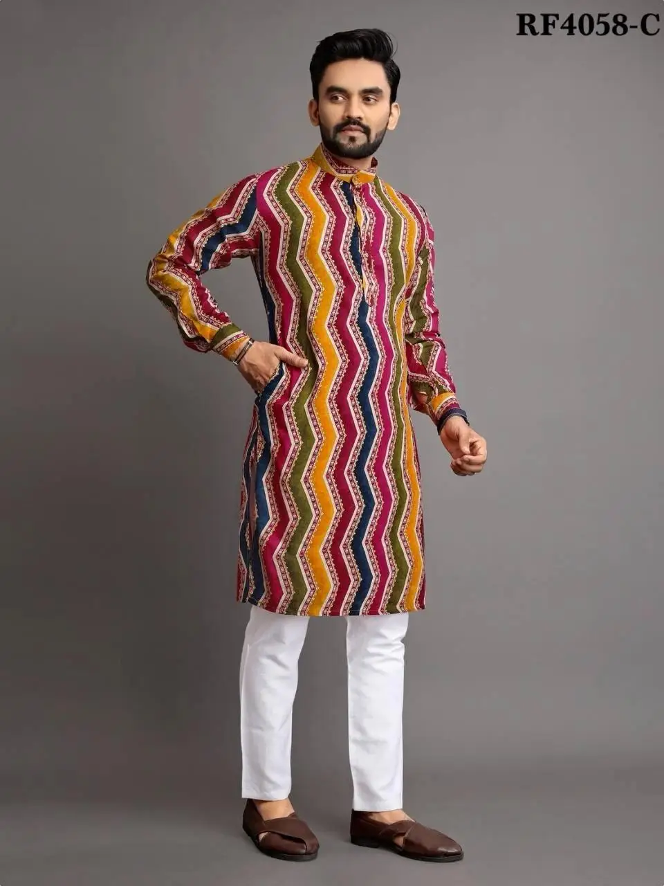 2025 Men Digital Printed Kurta Shirt Regular Fit Mandarin Collar Long Suitable All Occasions Such Wedding Hari Raya Aidilfitri