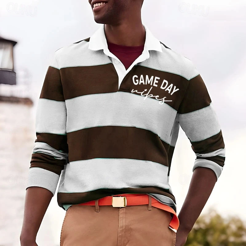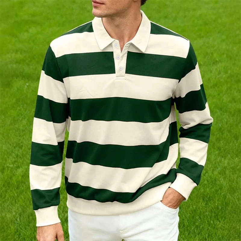 2026 New Striped Polo Shirts For Men Simple Fashion Long Sleeve 3D Printed Golf Polo Shirt Casual Oversized Daily Wear Tops