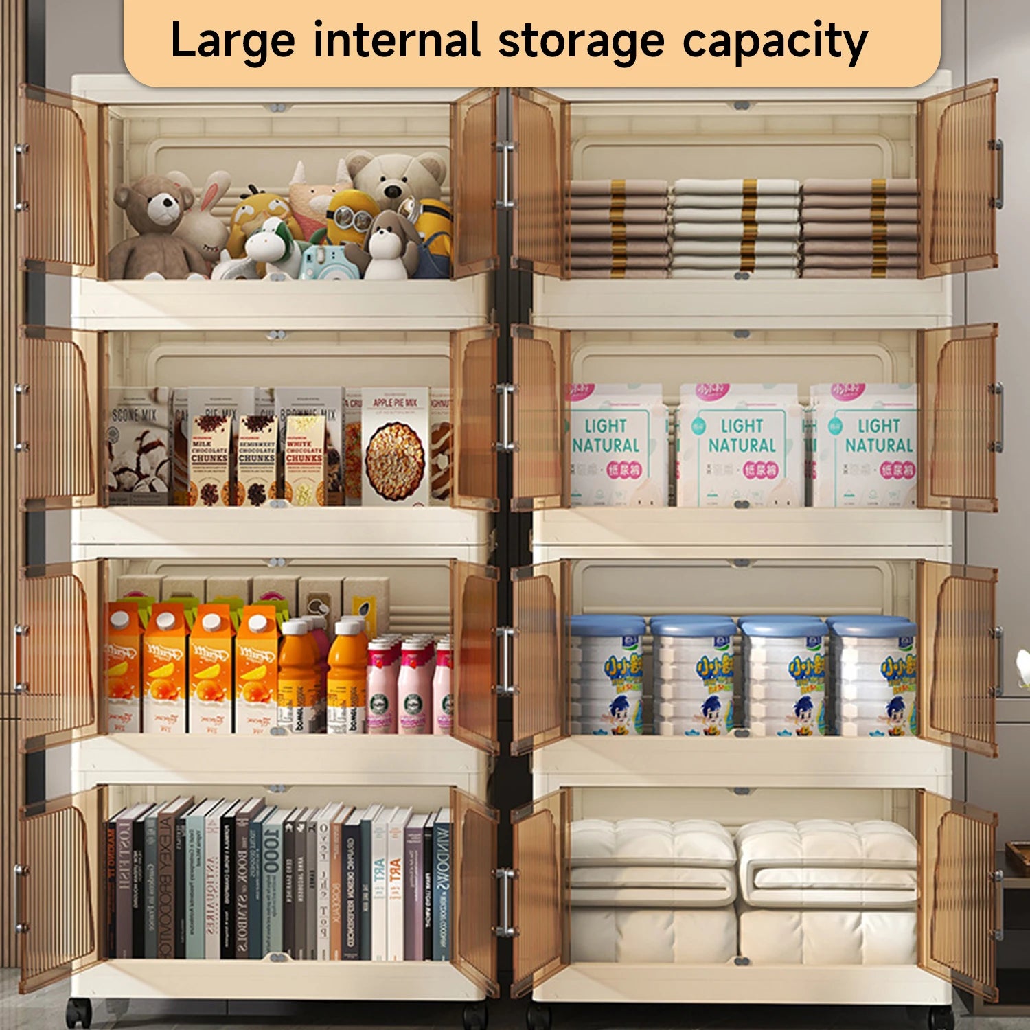 3/4 Layer Folding Storage Cabinet Storages Cabinet Waterproof Dustproof With Swivel Wheel Kitchen Bedroom Living Room Wardrobe