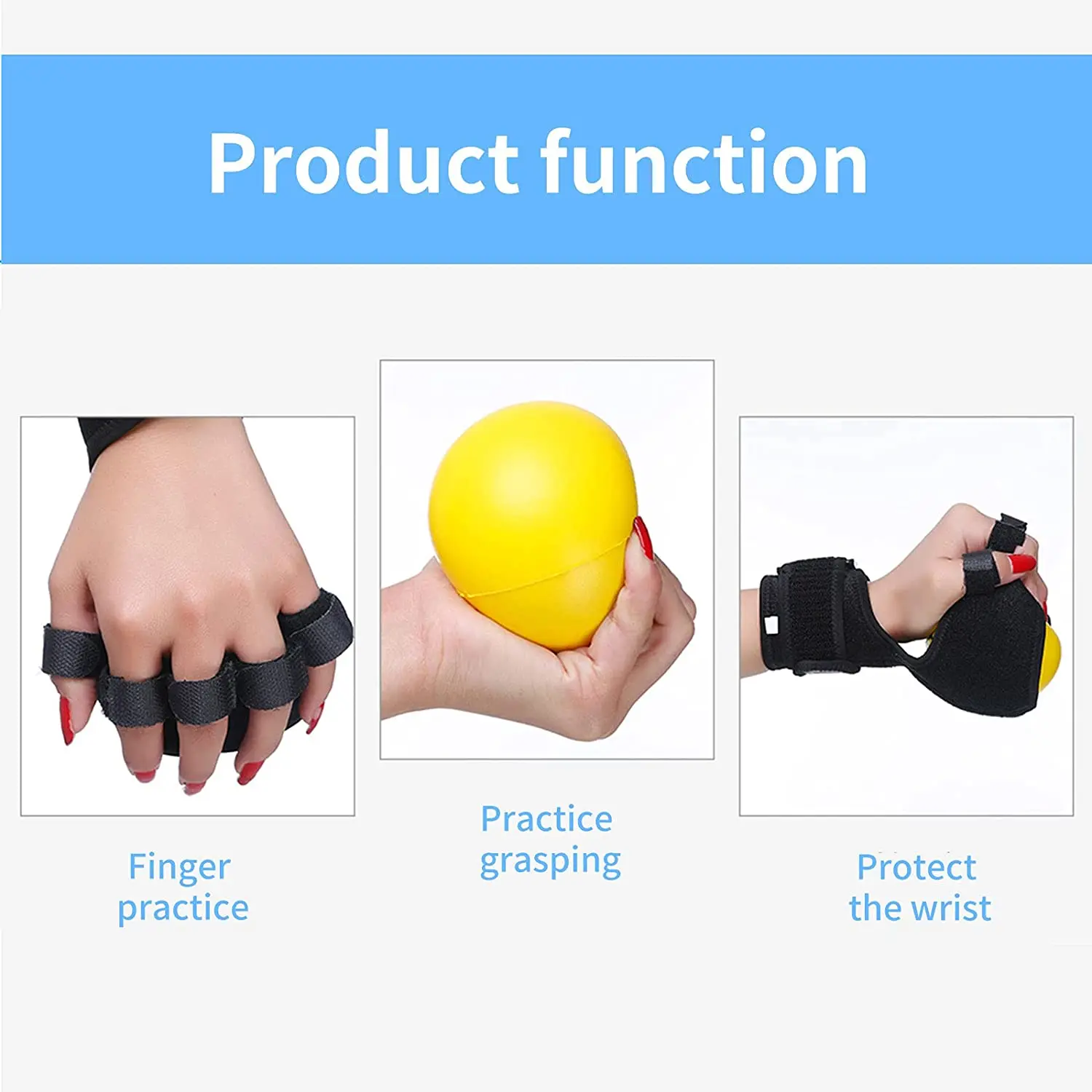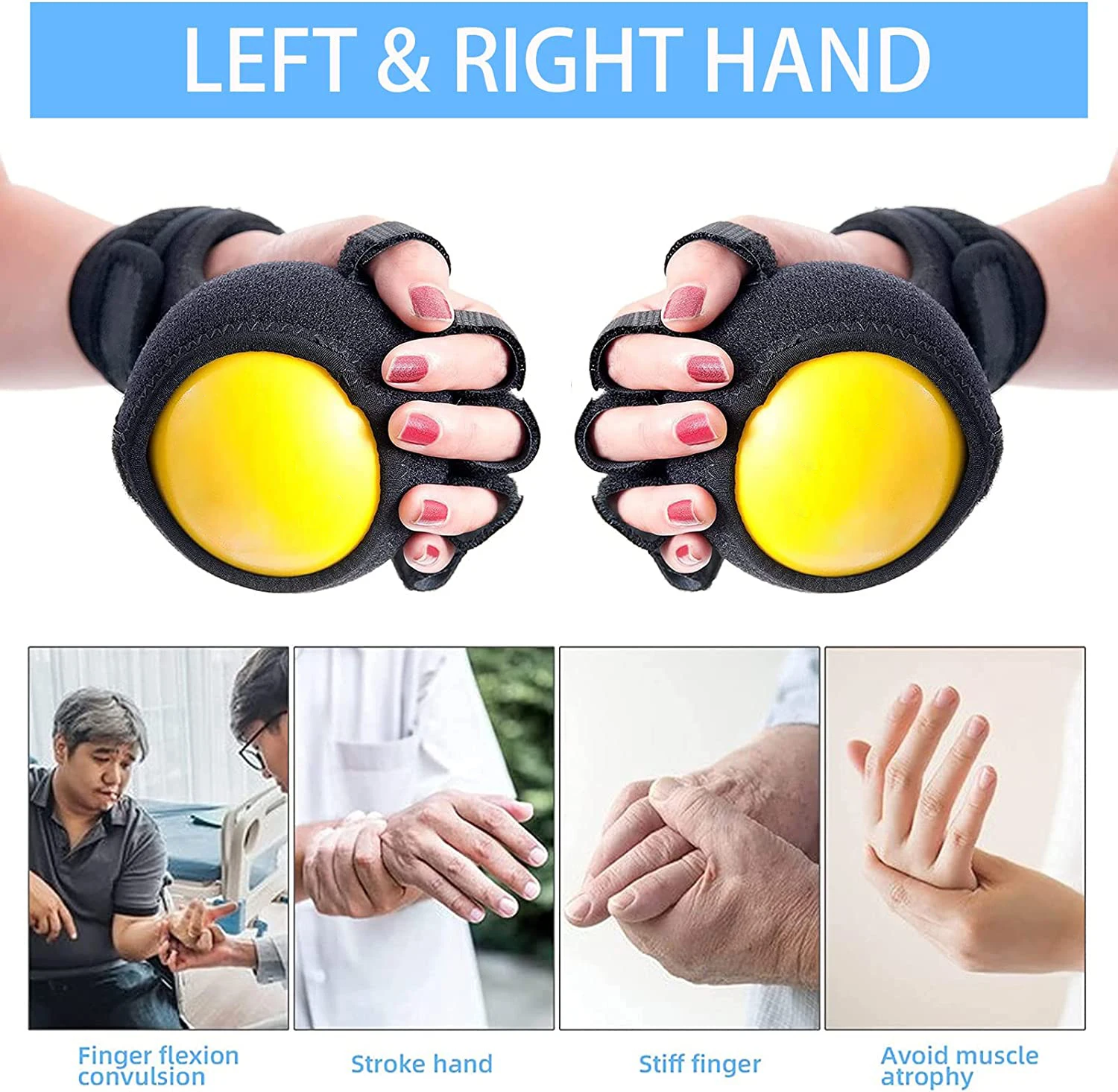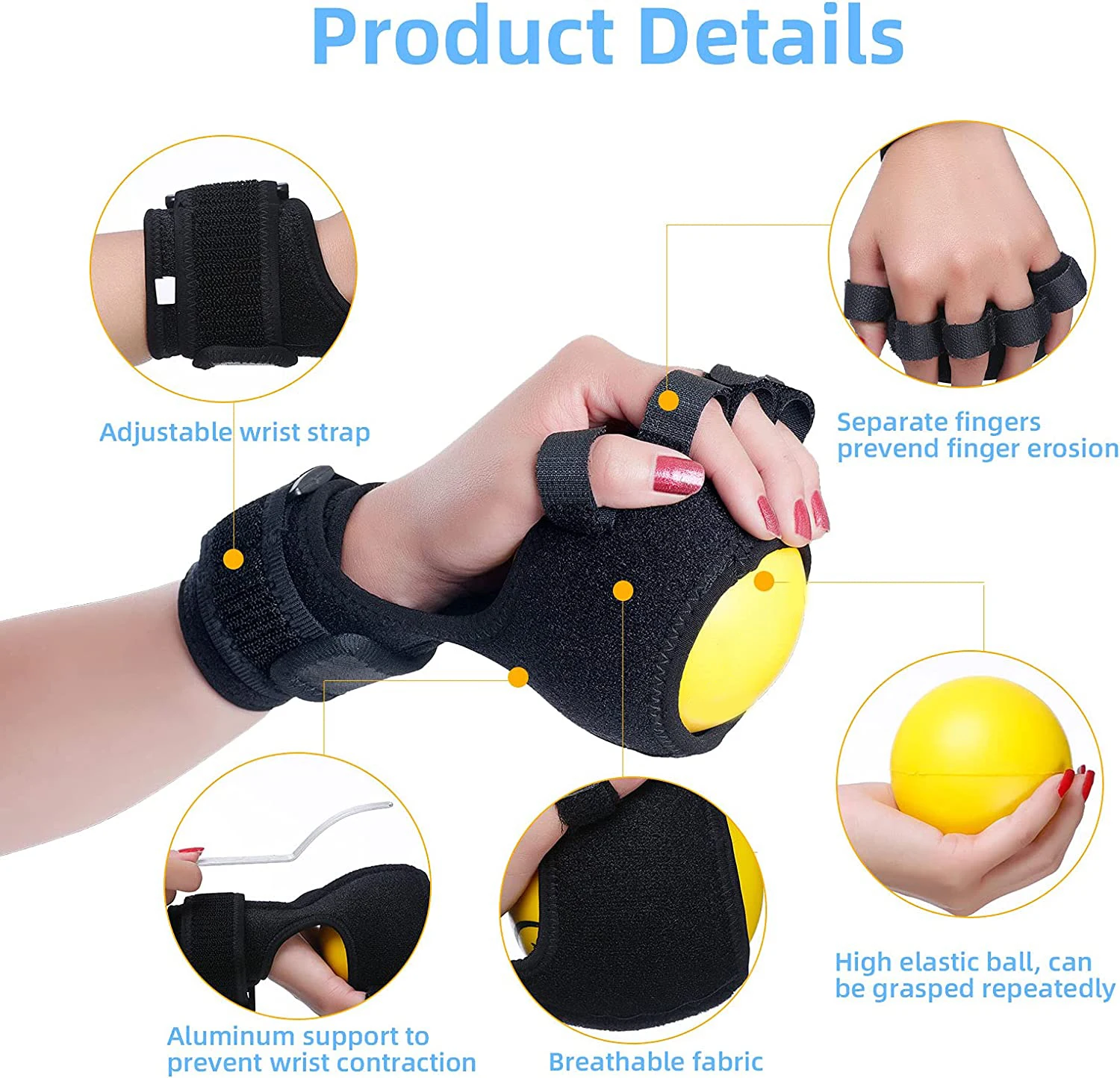 Anti-Spasticity Ball Splint Finger Posture Corrector for Stroke Hand Functional Split-fingered Hand Wrist Support Rehabilitation
