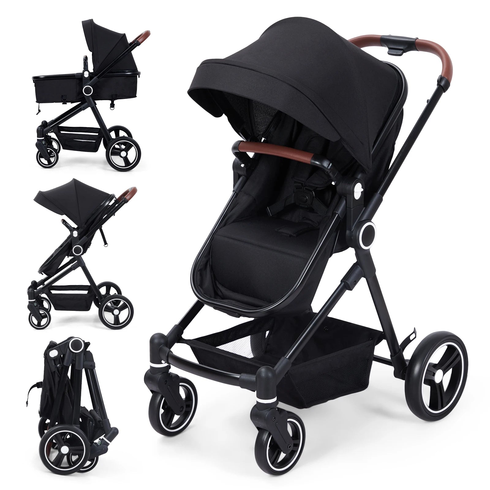 ADJUSTABLE BACKREST: The seat height of the convertible stroller is adjustable. The backrest can be divided into three modes: sitting, half-lying or lying mode to meet the different needs of the baby. The three-level canopy design can be adapted to different weather conditions, thus preventing strong sunlight for the baby.