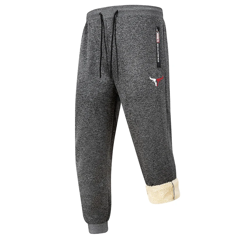 Bull Print Sherpa Fleece Lined Sweatpants for Men Winter Thermal Plush Joggers Pants with Zipper Pockets Casual Cozy Trousers
