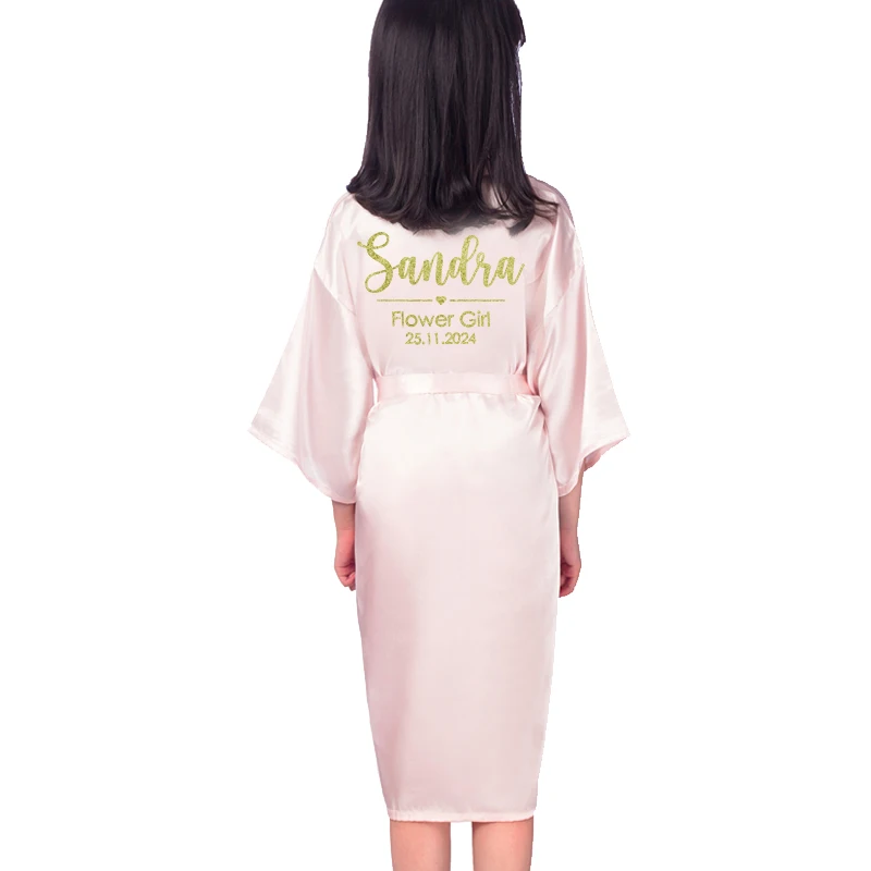 Customize Name Date Flower Girl Kimono Robes Wedding Bathrobes Pajamas Kids robe+belt Nightdress Brial Party Kid Robe