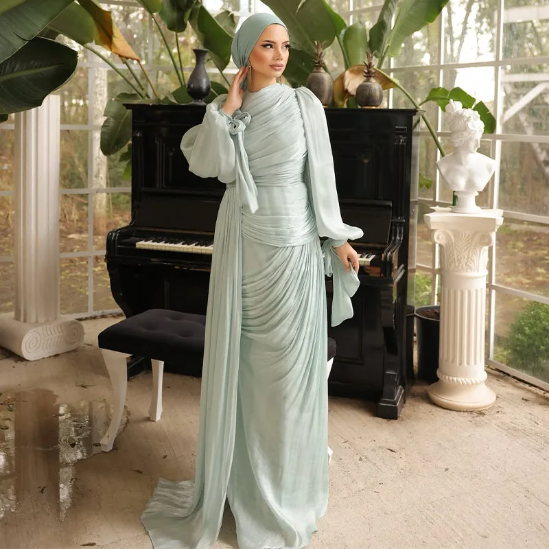Eid Silky Muslim Women Party Dreses Jalabiya Ramadan Abaya Dubai Evening Long Dresses Vestidos Largos Arab Robe Morocco Kaftan