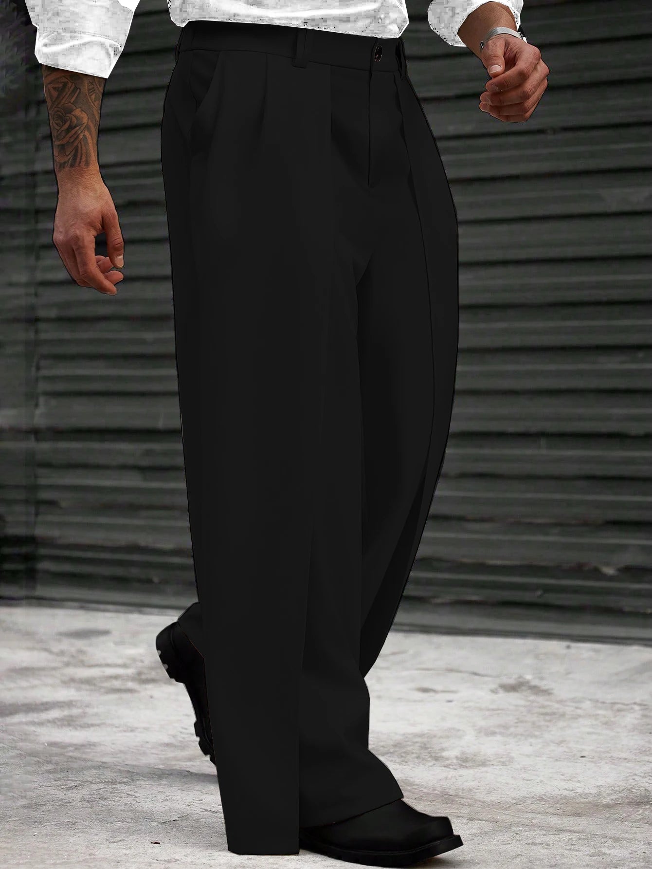Designed for plus size men, these trousers offer a comfortable fit with a loose wide leg design.