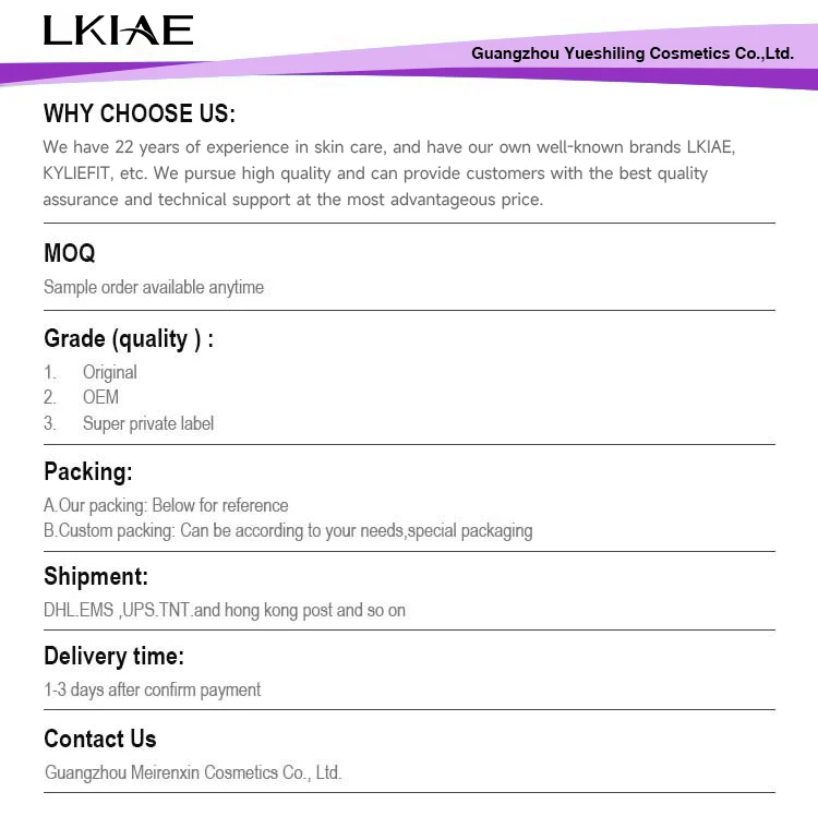 founded in 2001 is a comprehensive international enterprise integrating professional planning,research and development, and production of cosmetics.We have well known skin care brands such as LKIAE,kyliefit, belle mind.
