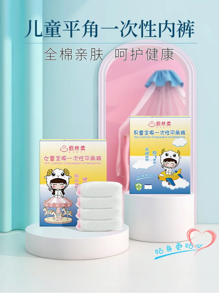 "Kids Cotton Disposable Boxer Briefs Individually Wrapped Daily Use Gift Box OEM Wholesale"