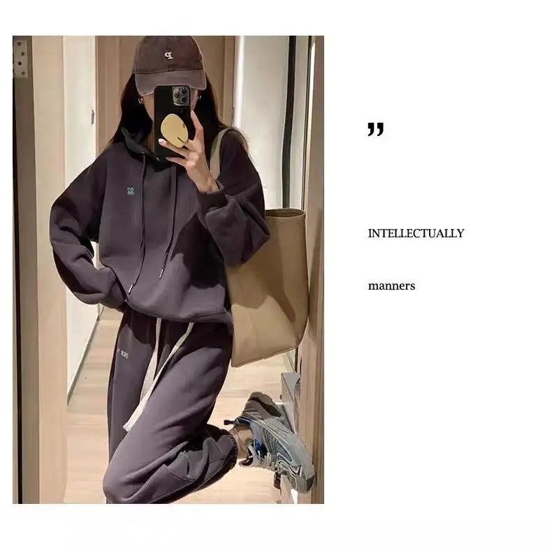 Korean Style Women's Casual Outfit Letter Embroidery Hoodie And Trousers Set Fashionable Spring Autumn Two-Piece Suit