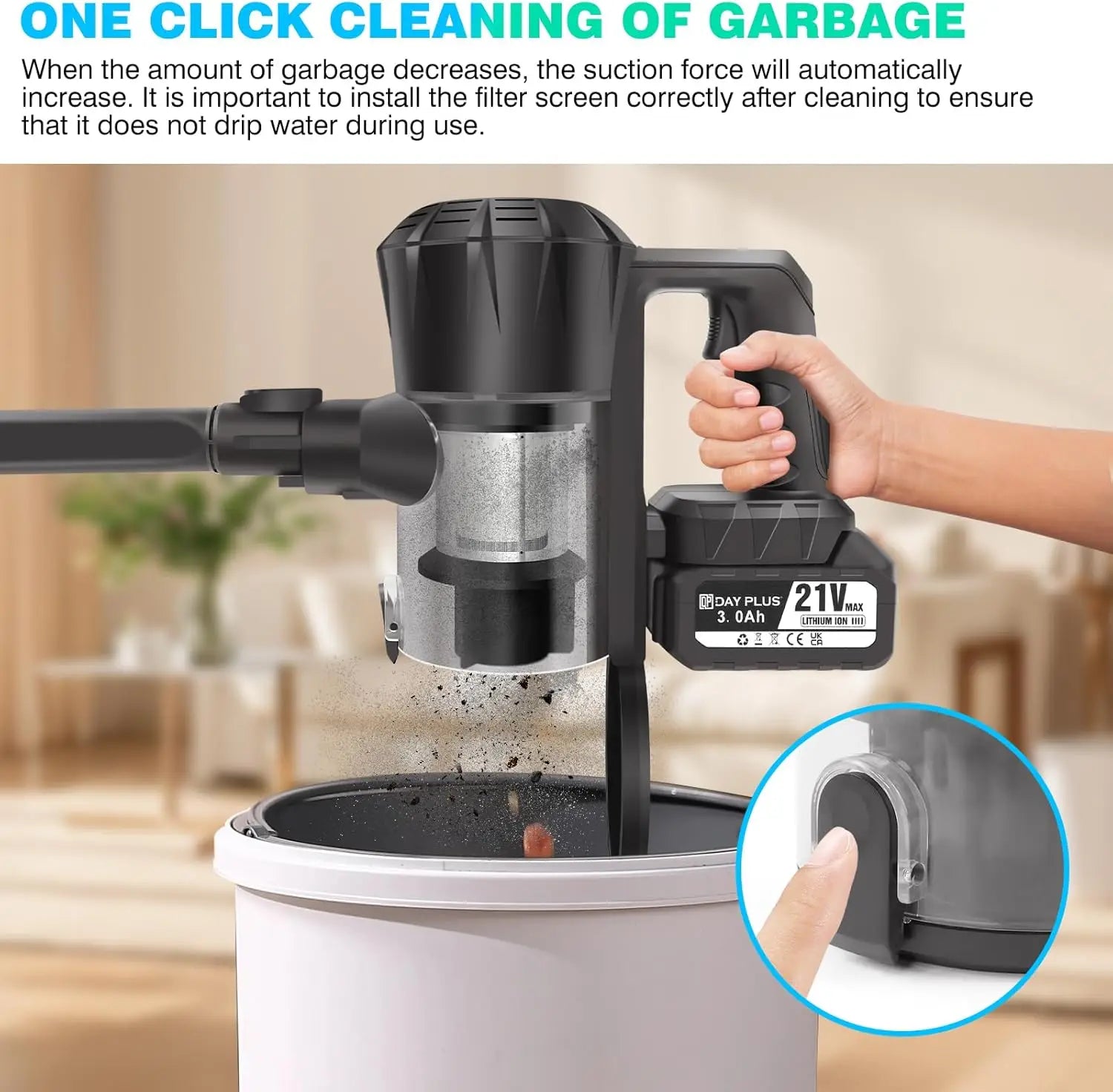 【Upgraded Removable Battery】Comes with 2 removable 3000mAh large capacity lithium-ion battery that provides 30 minutes of max suction or up to 60 minutes on ECO mode.