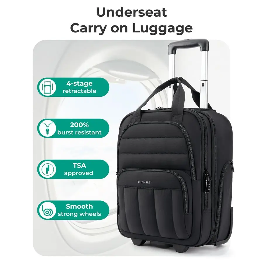 Underseat Carry on Luggage with Wheels, 16inch Under Seat Luggage, Lightweight Travel Luggage Travel Suitcase for Women, Persona