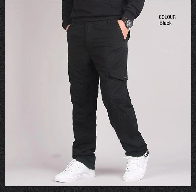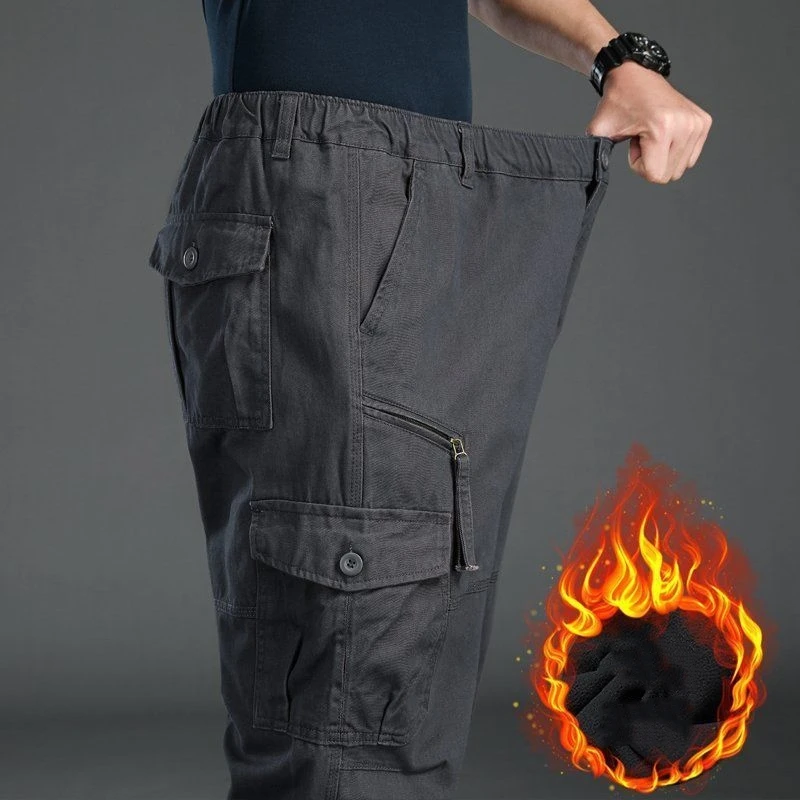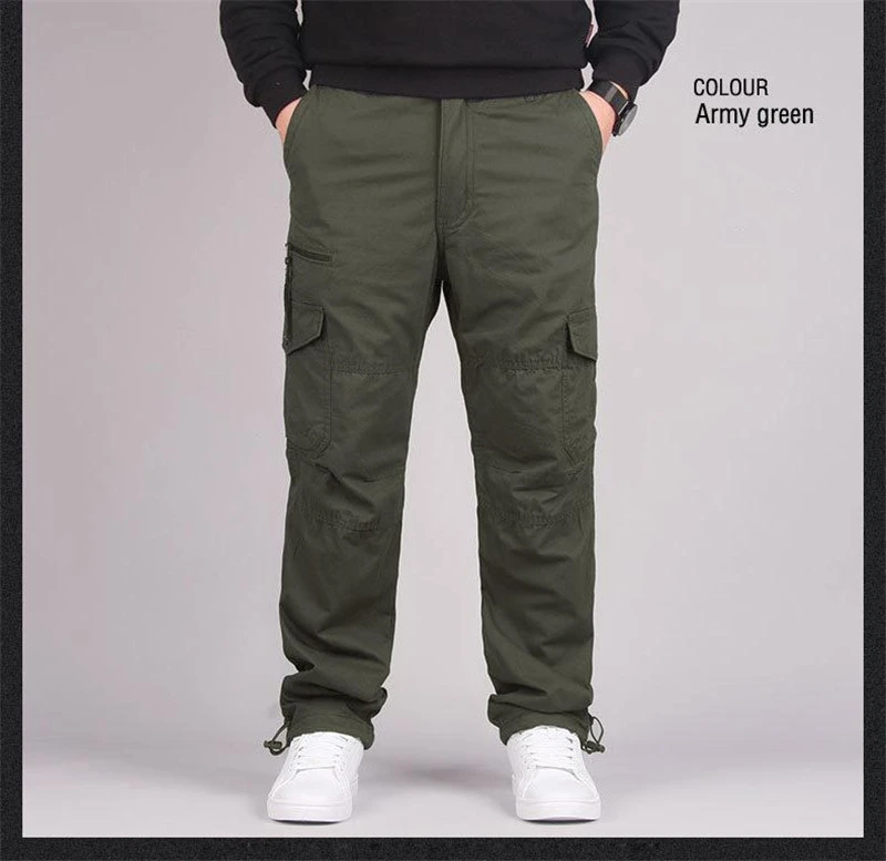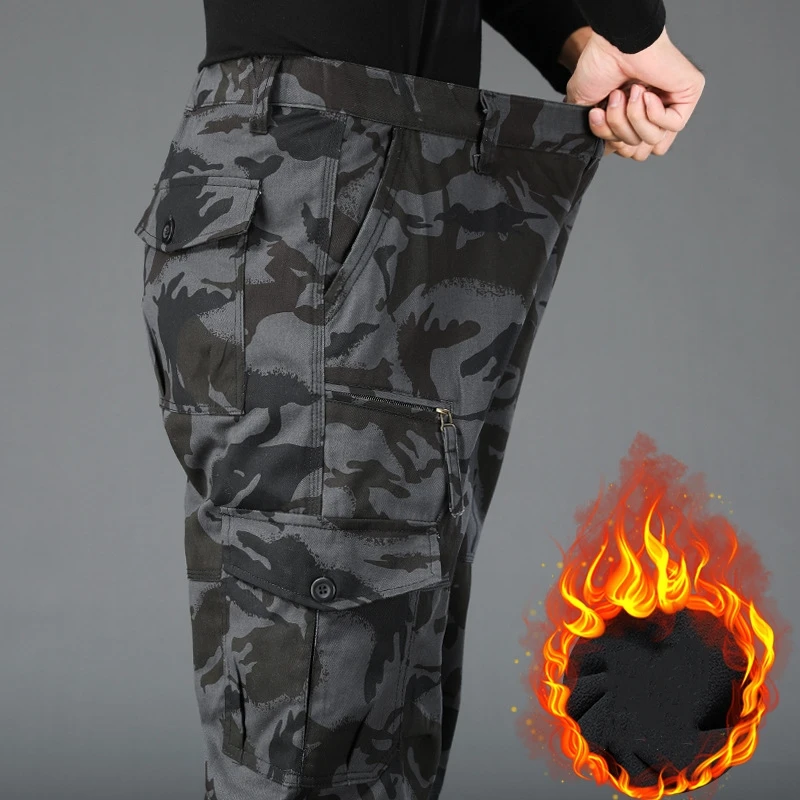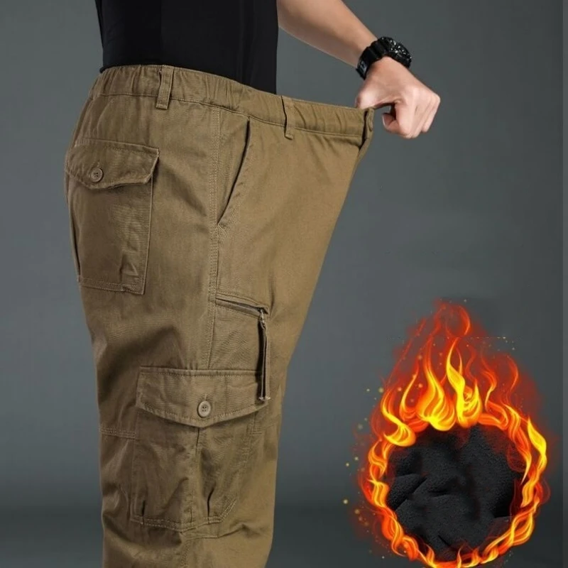 Winter Cargo Fleece Pants Men Thick Warm Straight Trousers Casual Multi Pockets Wear Resistant Baggy Tactical Cotton Work Pants
