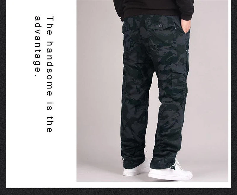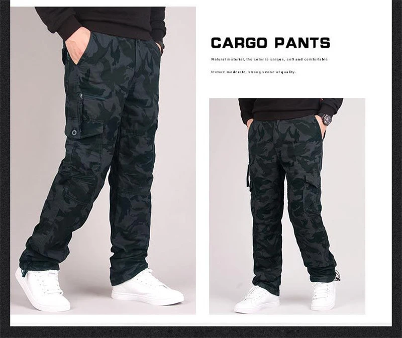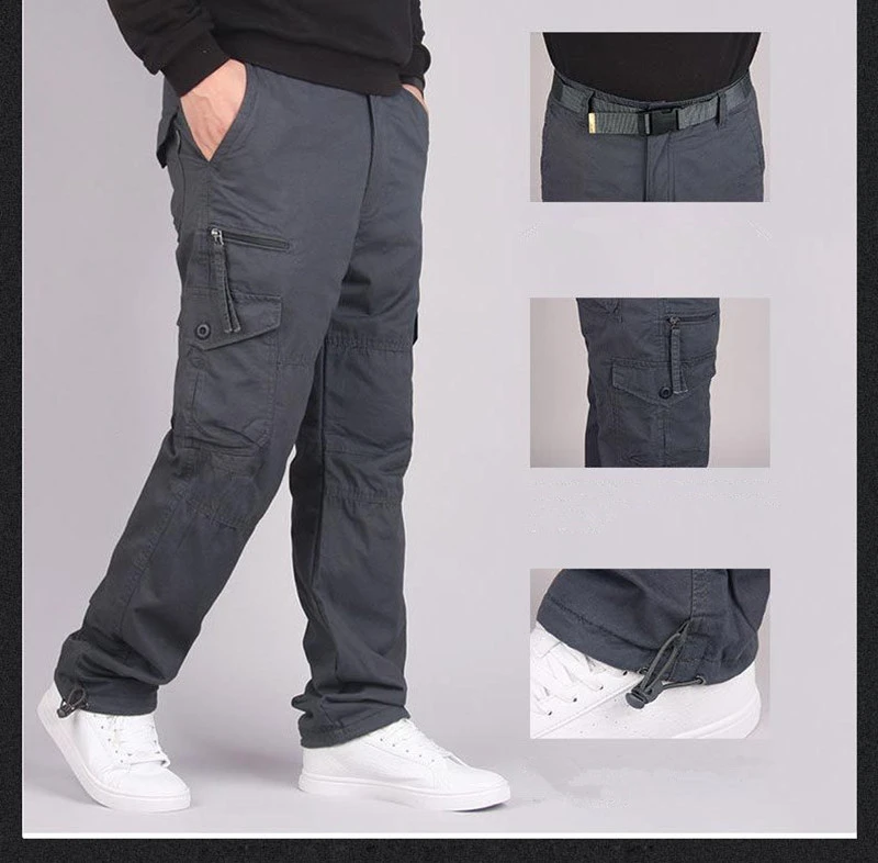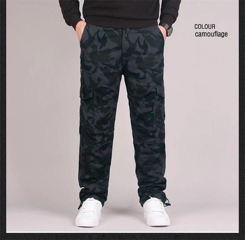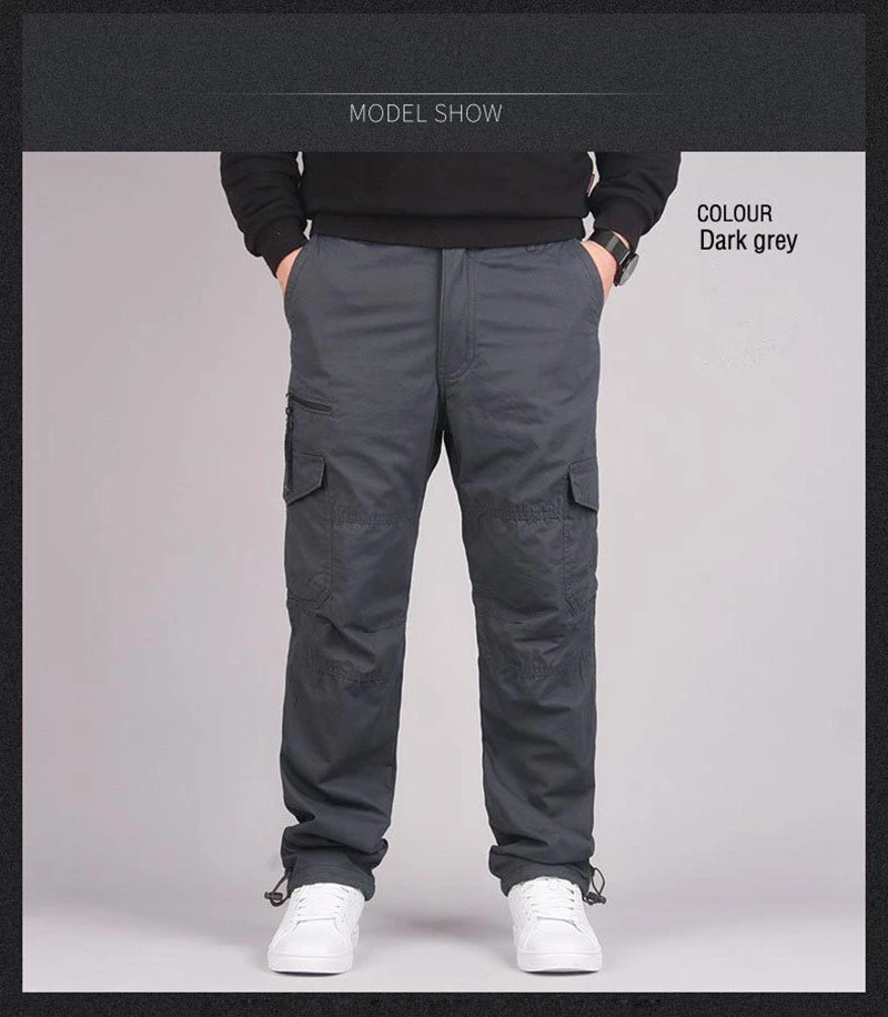 Winter Cargo Fleece Pants Men Thick Warm Straight Trousers Casual Multi Pockets Wear Resistant Baggy Tactical Cotton Work Pants