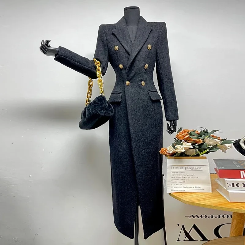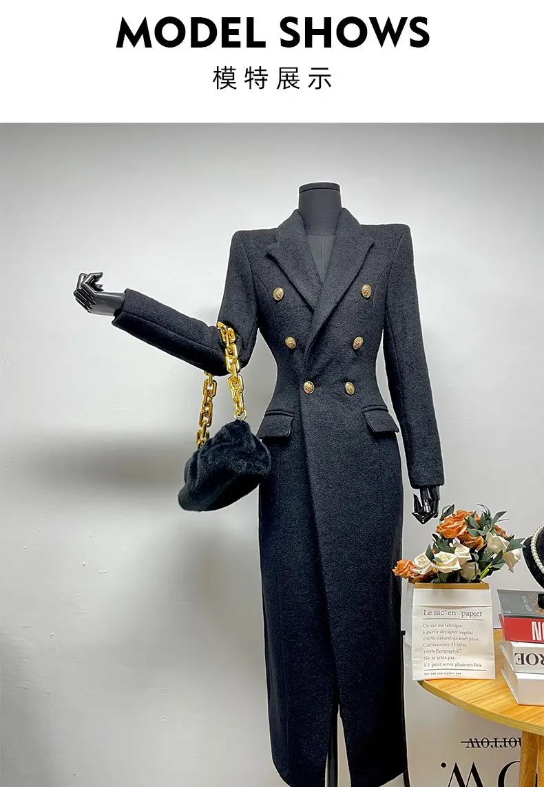 Woman Winter Coats 2025 New Style Fashionable Elegant Woolen Coat High End Professional Slimming Solid Color Long Outerwears
