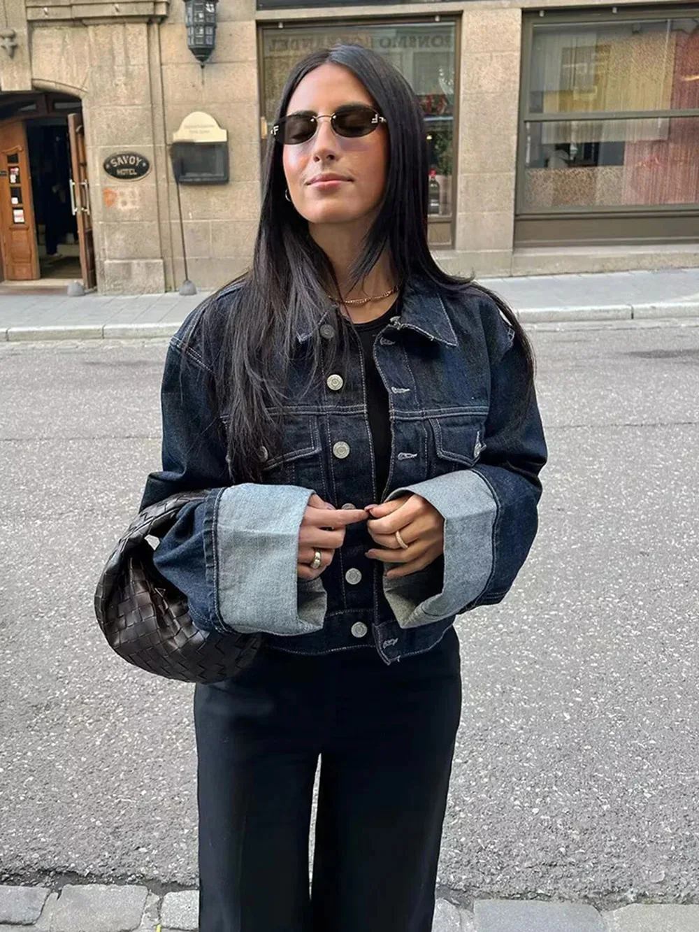 Women's 2025 Spring Fashion Casual Denim Jacket Coat Flared Rolled Pants Two-piece Set Ensemble Femme 2 Pièces Été