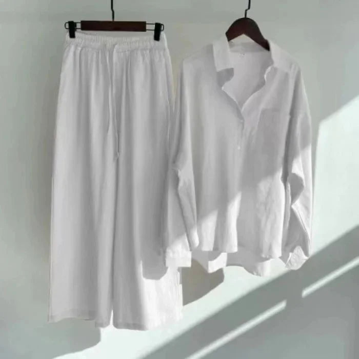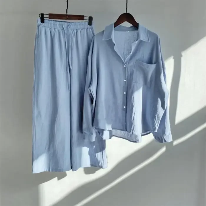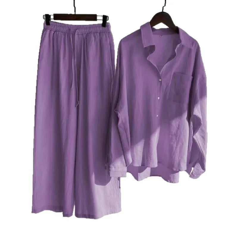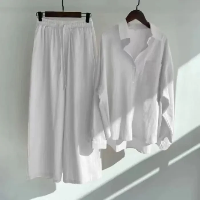 Women's Cotton Linen Shirt Set Loose Fit Two-Piece Suit 13 Colors plus Size Ladies Cross-Border Long Pants Ensemble