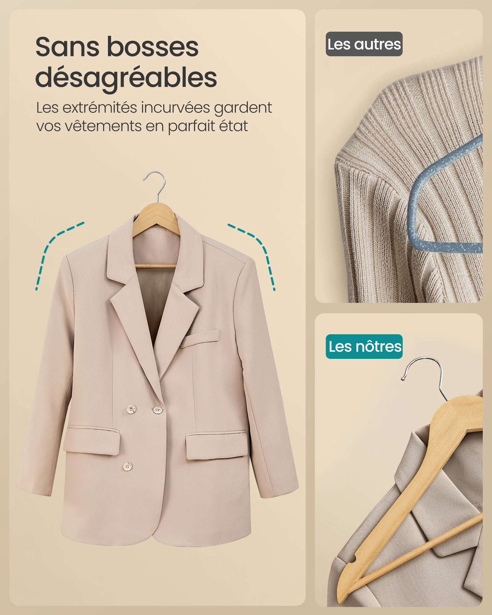 【ROBUSTE & DURABLE】Fabriqués en bois de bouleau de qualité et en acier premium, ces cintres sont robustes et durables. Chaque cintre supporte jusqu’à 5 kg et est donc adapté aux lourds manteaux d’hiver